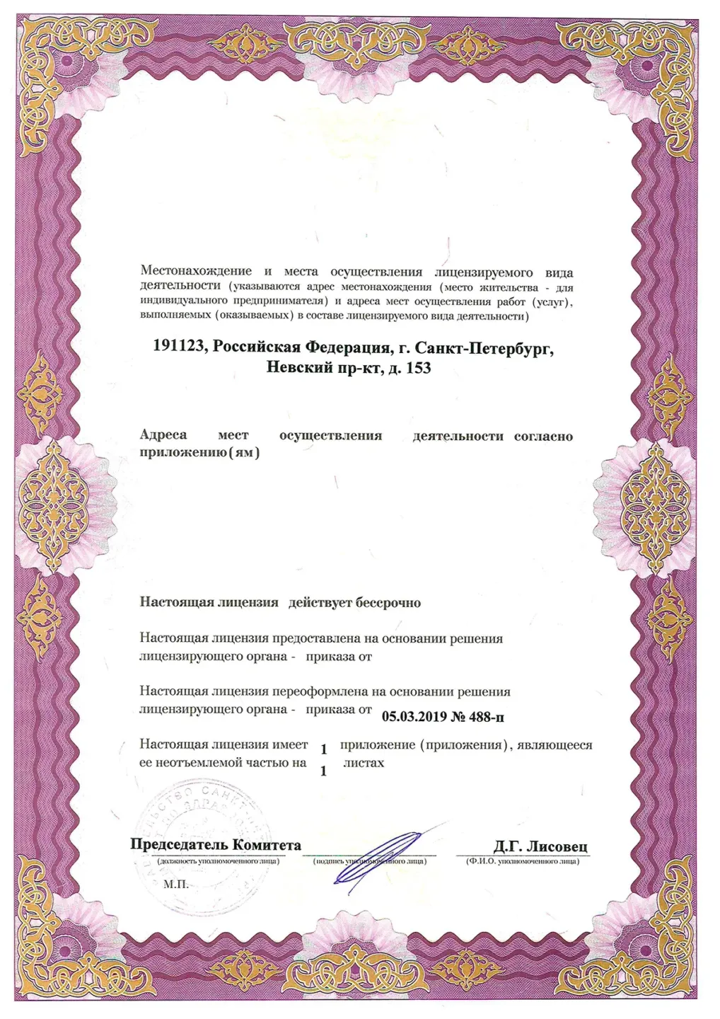 Юридический адрес: 191123, г. Санкт-Петербург, Невский проспект, д.153